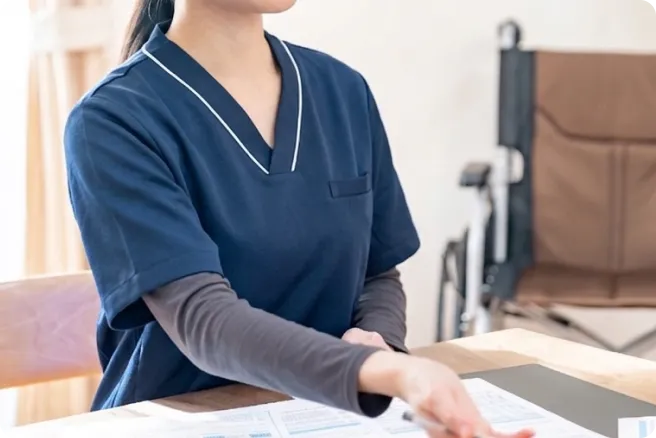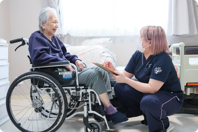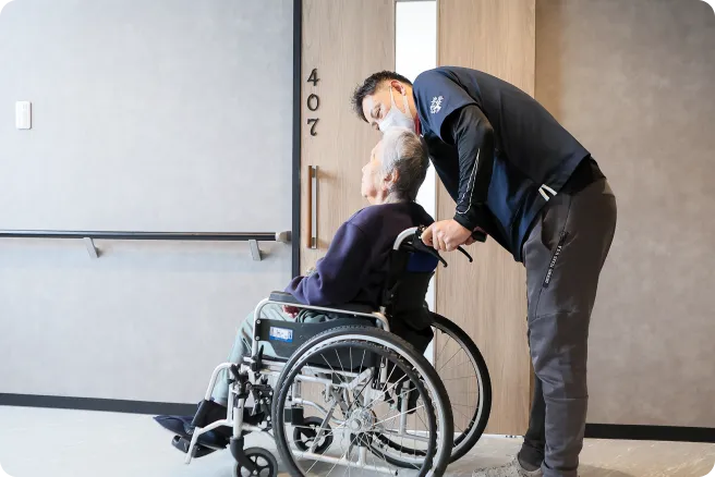 お一人おひとりの状態に合わせて排泄介助などの日常生活のサポートを行います。 -